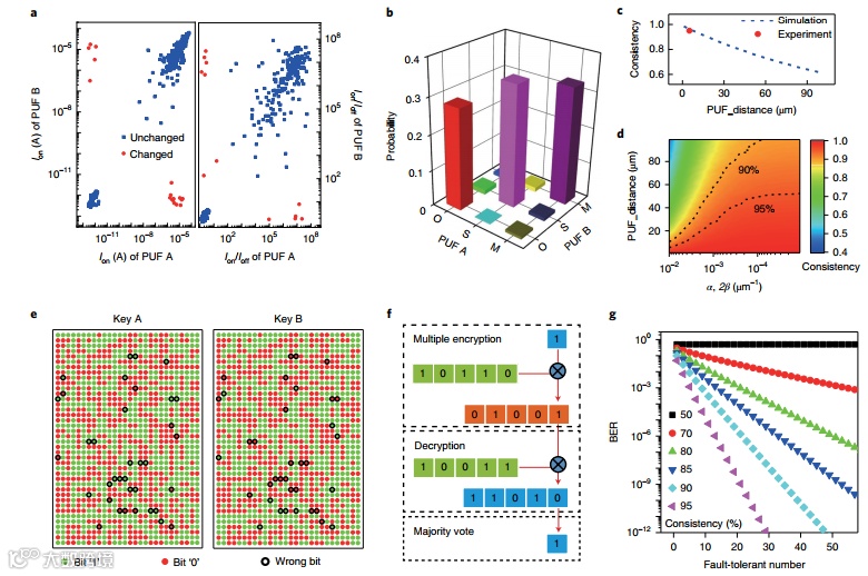 图4 碳纳米管CNT双物理不可克隆函数PUF的一致性及其在保密通信中的应用。