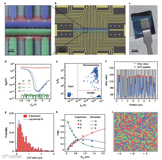 图2:碳纳米管CNT双物理不可克隆函数PUF,及其物理不可克隆函数PUF生成的三进制位的结构和性能。