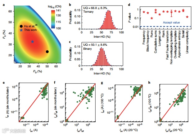 图3:碳纳米管CNT-物理不可克隆函数PUF生成的密钥特性。