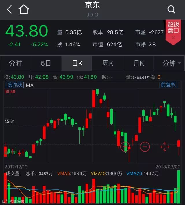 京东股价重挫逾5%