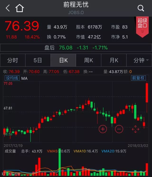 中概股收盘涨跌各异 前程无忧飙涨逾18%