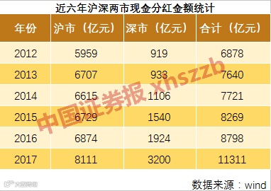2017年,沪市共有1058家公司推出现金分红方案,占公司总数的74.47%,同比增加约5个百分点;合计派现8111余亿元,同比增加约18个百分点,现金分红金额再创历史新高。