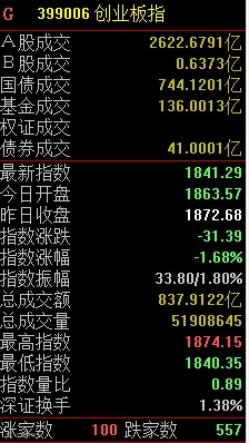 今日两市主要股指普遍小幅走软,中小板与创业板市场的个股活跃度则意外出现大幅下滑,中小板指数与创业板指数分别走跌0.87%和1.68%,个股涨跌比为180:629和100:557,是2月中旬以来较为少见的涨跌比水平。
