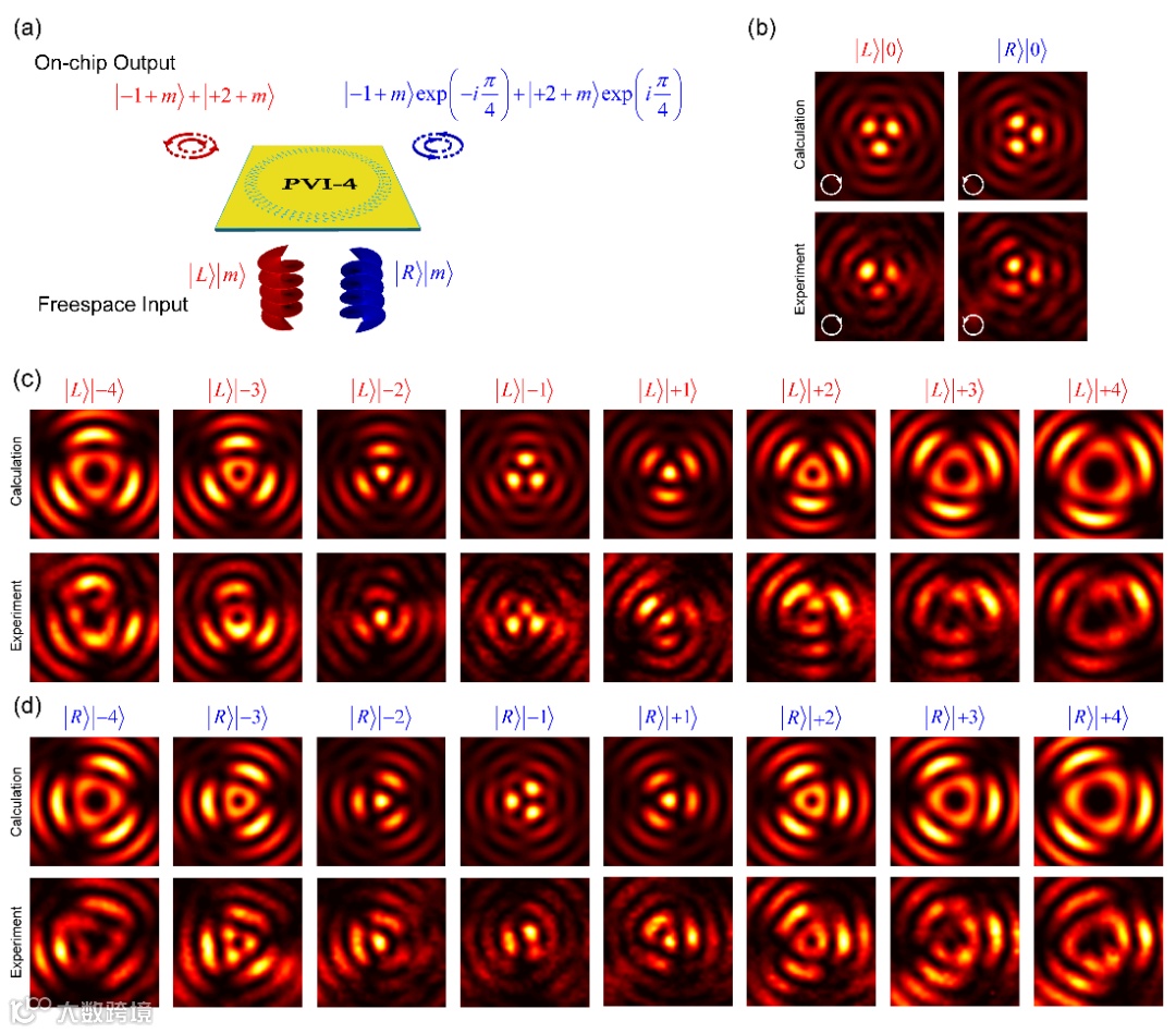 图3. (a)设计示意图;(b-d)不同自旋和轨道角动量的计算和实验结果。