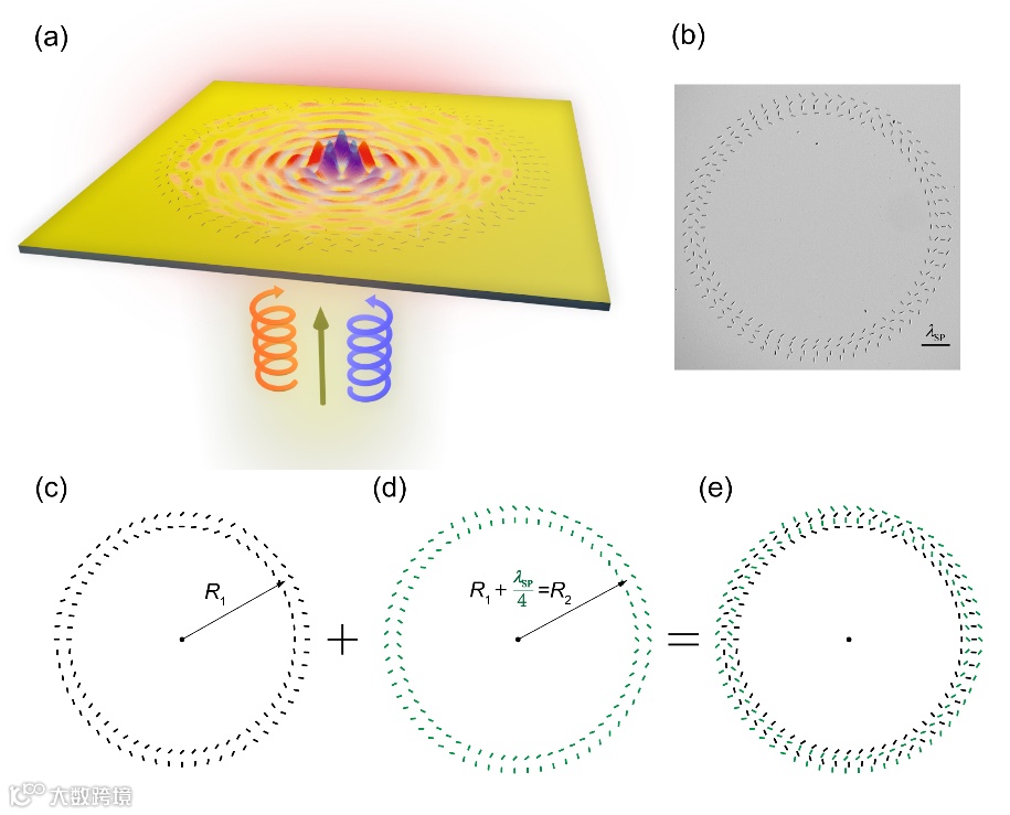涡旋现象普遍存在于自然界中,是物质与能量的特殊分布方式。表面等离激元涡旋位于金属和介质的交界面处,不仅具有表面等离激元的二维传播特性和强表面束缚特性,还具有涡旋光束的拓扑特性。得益于此,表面等离激元涡旋在片上粒子捕获/旋转和量子信息处理等尖端应用中具有独特的应用价值。目前,表面等离激元涡旋的激发方式多为单一圆偏振入射下的单一涡旋激发,缺乏更高自由度的激发方法。另外,不同表面等离激元涡旋之间的干涉效应也未得到深入研究。
