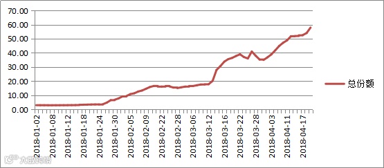 据Wind资讯,华安创业板50ETF4月19日份额增加近4亿份。其规模从年初的2.88亿份增长至57.91亿份(截至4月19日),增长了19倍。