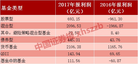 分类型来看,去年货币基金利润2106.38亿元,混合型基金利润2096.53亿元,股票型基金利润693.15亿元。