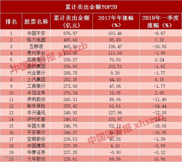 2017年被基金卖出前十的股票分别是中国平安、格力电器、五粮液、贵州茅台、招商银行、美的集团、兴业银行、上汽集团、工商银行、中信证券。