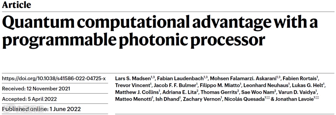 Lars S. Madsen.et al. Quantum computational advantage with a programmable photonic processor.Nature,2022.