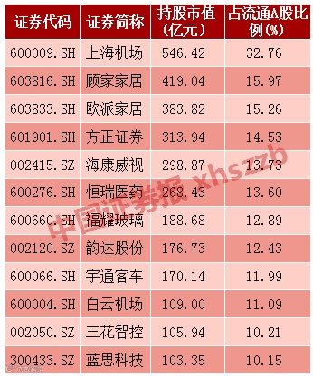 北上资金持股市值超百亿个股
