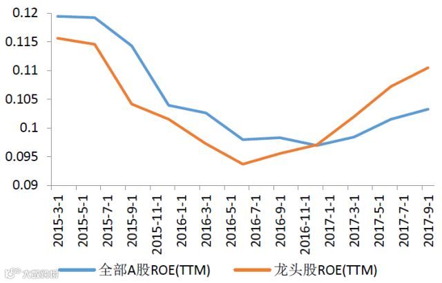龙头股ROE自2017年开始高于全部A股