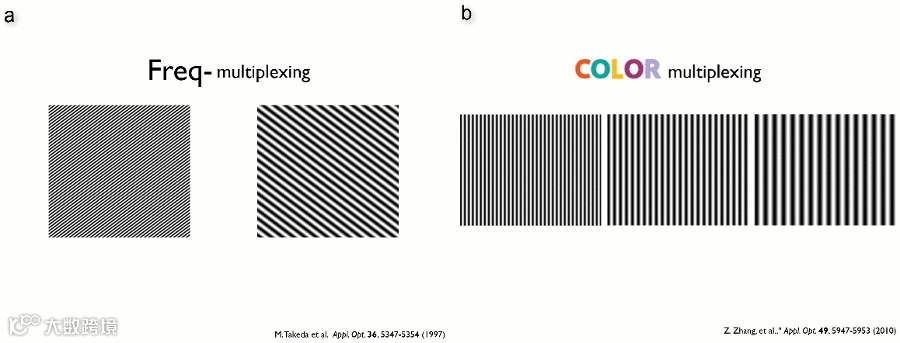 图3 基于频分复用的FTP11 (a)及基于三通道彩色条纹复用的FTP12 (b)