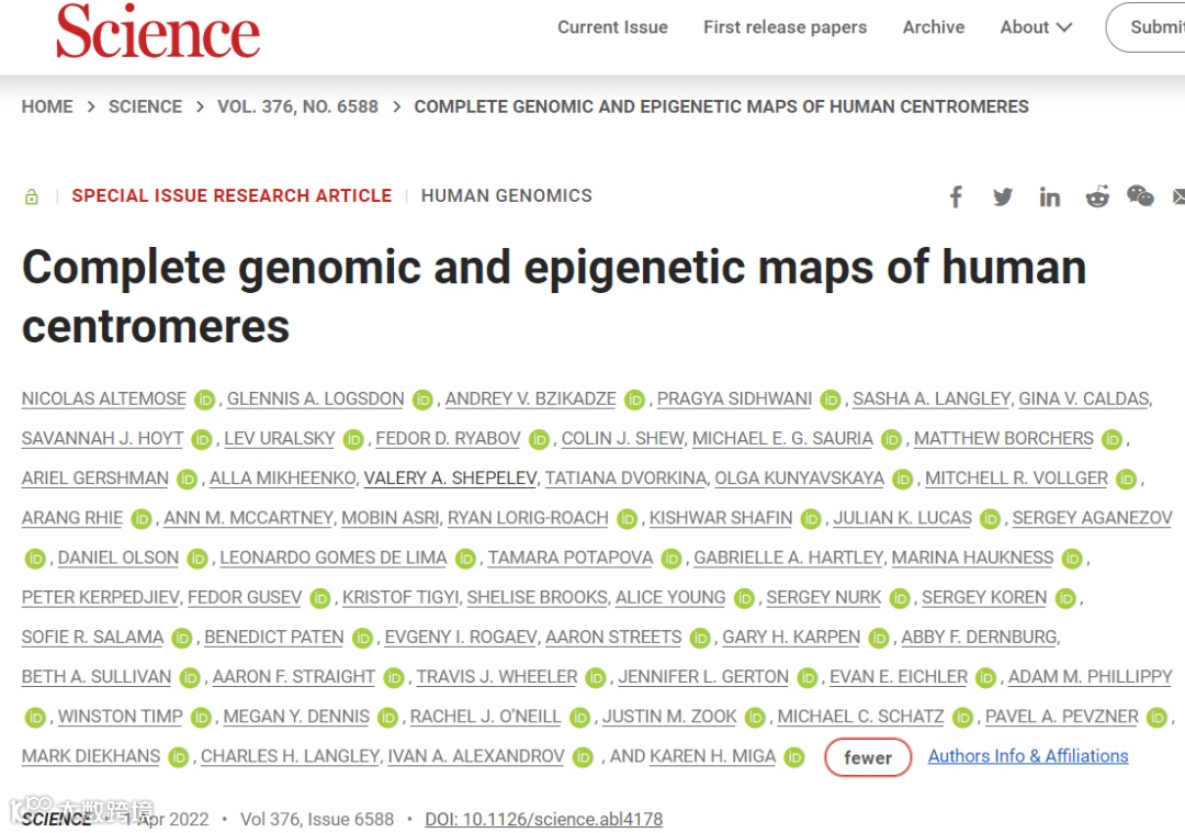 2022年4月1日,加州大学伯克利分校Nicolas Altemose等人在Science 在线发表题为“Complete genomic and epigenetic maps of human centromeres”的研究论文,一个完整的端粒到端粒人类基因组组装 (T2T-CHM13) 使研究人员能够全面地表征构成基因组 6.2% 的着丝粒周围和着丝粒重复序列(189.9 兆碱基)。这些区域的详细图谱显示了多碱基结构重排,包括活性着丝粒重复阵列。对着丝粒相关序列的分析揭示了着丝粒的位置与周围 DNA 通过分层重复扩展的进化之间的密切关系。此外,对不同个体组中 X 染色体着丝粒的比较揭示了这些复杂且快速进化的区域中高度的结构、表观遗传和序列变异。
