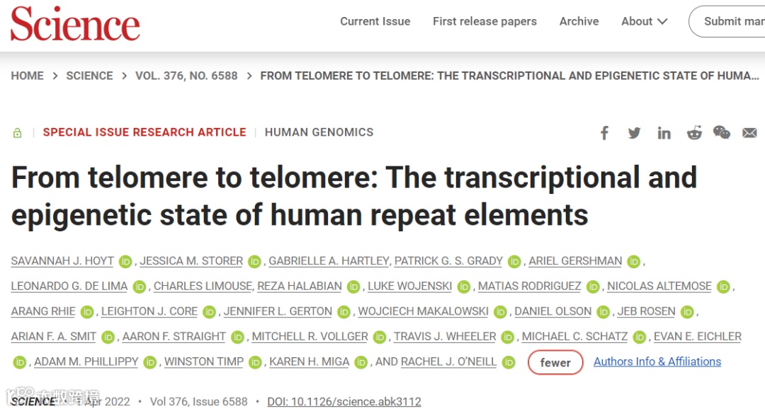 2022年4月1日,康涅狄格大学Savannah J. Hoyt等人在Science 在线发表题为“From telomere to telomere: The transcriptional and epigenetic state of human repeat elements”的研究论文,该研究提出了 T2T-CHM13 人类参考基因组的从头重复发现和注释。该研究确定了以前未知的卫星阵列,扩展了重复和移动元件的变体和家族目录,表征了复杂复合重复的类别,并定位了逆转录转导事件。该研究检测了新生转录并描绘了 CpG 甲基化谱,以定义人类转录活性逆转录元件的结构,包括着丝粒中的逆转录元件结构。这些数据扩展了对塑造人类基因组的重复区域的多样性、分布和进化的洞察力。