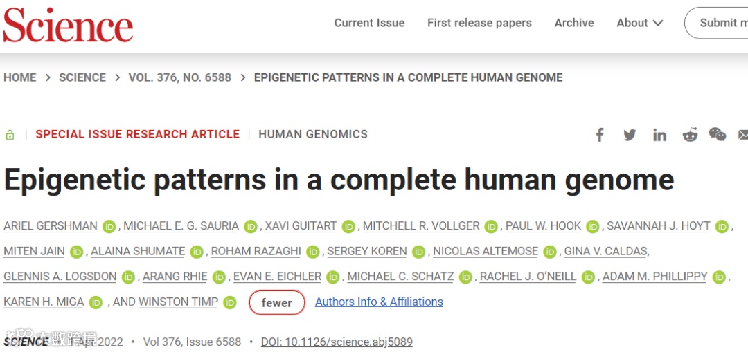 2022年4月1日,约翰霍普金斯大学Ariel Gershman等人在Science 在线发表题为“Epigenetic patterns in a complete human genome”的研究论文,该研究提出了对以前未解决的序列的高分辨率表观遗传研究,代表了整个近端染色体短臂、基因家族扩展和重复类别的多样化集合。该资源精确地映射了 CpG 甲基化(3228 万个 CpG)、DNA 可访问性和短读长数据集(166,058 个以前未解决的染色质免疫沉淀测序峰),以提供以前未识别或校正的基因的活性证据,并揭示临床相关的旁系同源物特异性调节。对来自六个不同个体的人类着丝粒的 CpG 甲基化进行探测,可以估计动粒定位的变异性。该分析提供了一个框架,可以用来研究人类基因组中最难以捉摸的区域,从而深入了解表观遗传调控。