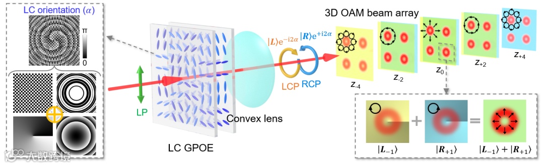 图2. 基于液晶几何相位的OAM光束三维阵列操控示意图