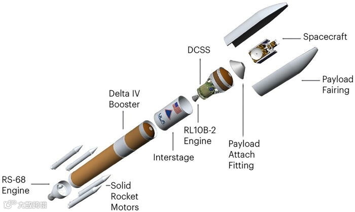 图:Delta IV M + 运载火箭组件示意图。图片由美国发射联盟公司(ULA)提供。