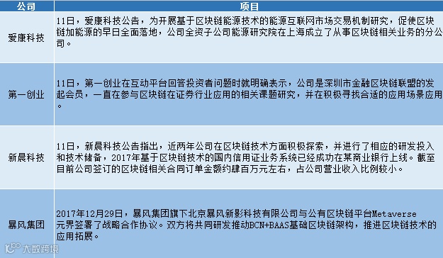 (部分上市公司区块链应用布局图表)