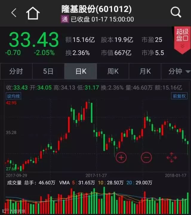 陕西煤业1月17日晚间公告,2017年7月18日至2017年12月5日,公司通过“西部信托·陕煤-朱雀产业投资单一资金信托”于证券交易所的集中交易增持9959万股隆基股份(601012)股票,占其总股本的4.99%。2018年1月16日,公司通过集中竞价增持隆基股份10.95万股,占其总股本的0.01%。本次对外投资完成后,公司合计持有隆基股份9970万股,占其总股本的5%。