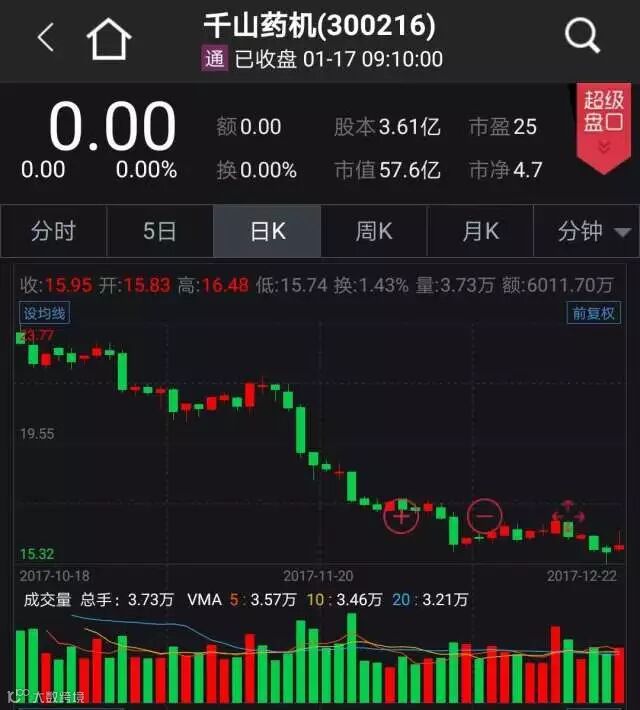 千山药机是注射剂生产设备供应商,主要产品包括非PVC膜软袋大输液生产自动线、塑料瓶大输液生产自动线等。公司业绩表现还算不错,2017年前三季度将实现净利润4435.7万元,同比增长135.27%,并预计全年业绩增长。不过股价表现方面可不甚理想,自2016年一来走出下跌趋势,累计跌幅达63.74%。原本2016年12月末就计划的定增项目至今仍为成型,此次股权转让也被迫终止,还被证监会因信披违规调查,千山药机复牌后走势将会怎样呢?