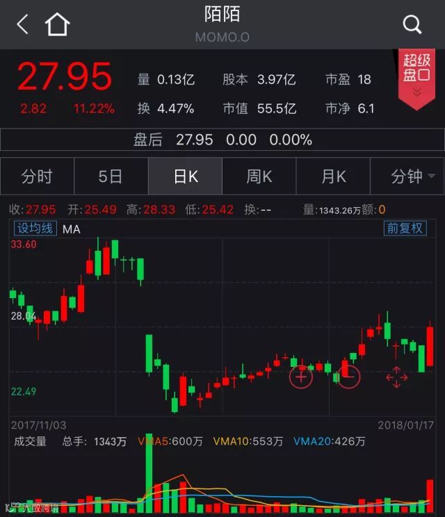 中概股周三收盘涨跌互现 陌陌飙涨逾11%