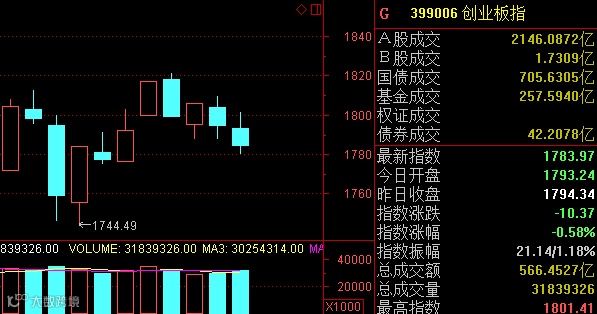 12月以来创业板指数日K线走势
