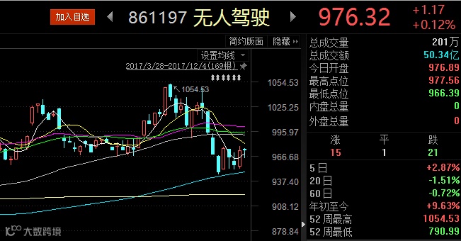 概念股中,除长城汽车这类本身从事汽车行业的重资产公司外,以市值50亿元左右的中小盘公司居多。截至12月4日午盘,无人驾驶概念股中涨势最好的是四维图新,涨幅达3.08%,沪电股份和欧菲科技也有2%左右的涨幅。