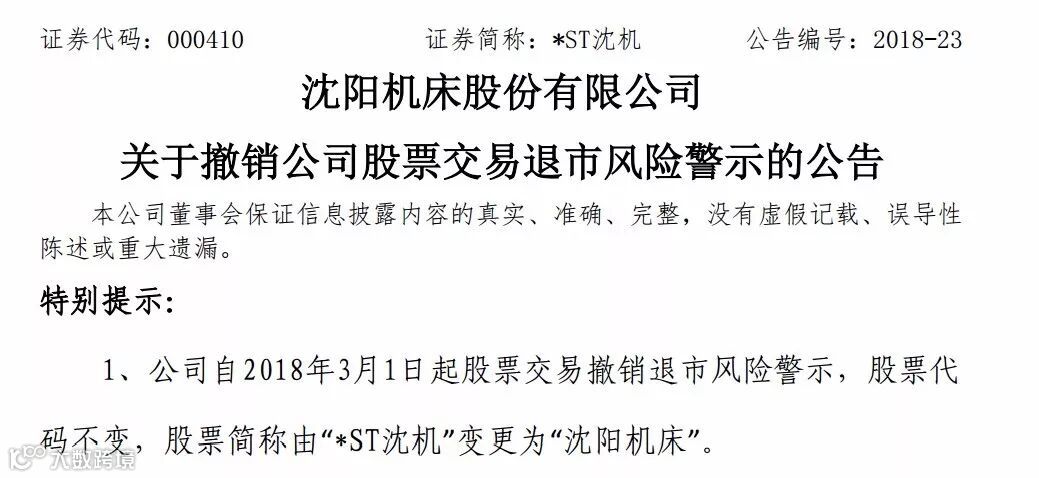 沈阳机床今日(3月1日)强势涨停!该股是2018年的摘帽第一股——*ST沈机2月28日公告,自3月1日起公司股票撤销退市风险警示,股票简称变更为“沈阳机床”。