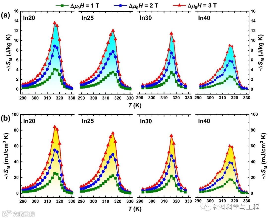 图2 MM¢X/In复合材料的磁热性能