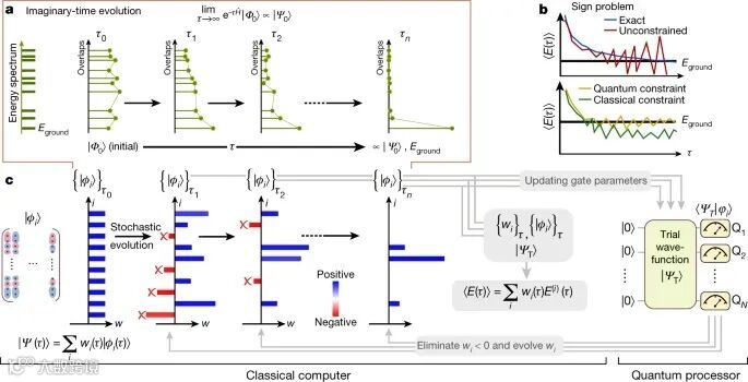 图1. 想象时间进化,符号问题和研究者的量子-经典混合算法