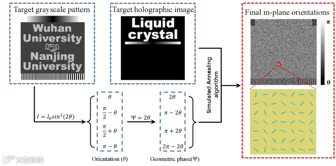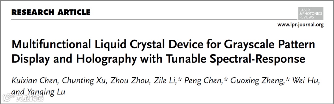 近日,武汉大学电子信息学院郑国兴教授课题组与南京大学现代工学院陆延青教授课题组在新型液晶元器件领域取得新进展,通过在液晶分子取向排布中引入马吕斯定律的拓展——转角简并性,实现了光波振幅和相位的独立调控,在保留液晶平板显示功能且不增加元件的前提下,额外增加了独立的全息投影功能,实现了超紧凑液晶多功能器件的突破。相关研究成果以“Multifunctional Liquid Crystal Device for Grayscale Pattern Display and Holography with Tunable Spectral-Response”为题,发表于国际期刊《Laser & Photonics Reviews》(DOI: 10.1002/lpor.202100591)上。论文通讯作者为武汉大学郑国兴教授/李子乐特聘研究员和南京大学陈鹏副教授,共同第一作者为武汉大学博士生陈奎先/周舟和南京大学博士生徐春庭,胡伟教授对本文亦有重要贡献。该研究由国家重点研发计划、国家自然科学基金、中央高校基本科研业务费等资助完成。