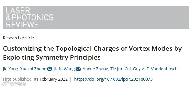 相关工作以“Customizing the topological charges of vortex modes by exploiting symmetry principles (DOI: 10.1002/lpor.202100373)上。比利时鲁汶大学杨杰博士为论文第一作者,鲁汶大学郑学智博士和西安交通大学兼职教授王甲富教授为论文共同通讯作者。鲁汶大学范登布施教授、西安交通大学张安学教授和东南大学崔铁军院士也为该工作做出了重要的贡献。
