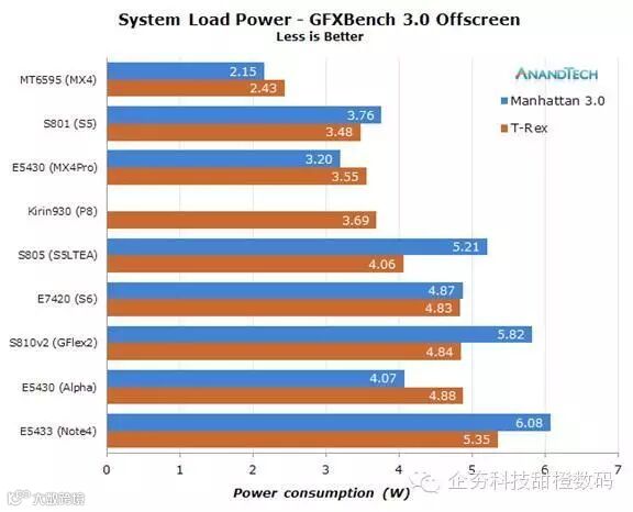 这样的问题在早期机型上面十分明显,如首发的LG GFlex 2、小米note旗舰版的早期批次,温度过高,续航段的问题十分明显。Anandtech测试骁龙810的3D负载功耗高达5.82W,相比801要高上55%。