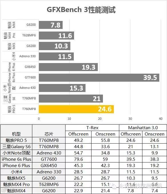 魅族PRO 5是3D性能最为强大的Android手机,但不是最为强大的手机,因为更为暴力的iPhone 6s而言还是过于保守。以曼哈顿3.0 offscreen性能为例,搭载Power VR GT7600的iPhone 6s性能为39.5FPS,相对PRO 5还要领先60%。以后谁说iPhone不堆性能就跟我说,我第一个跟他急。