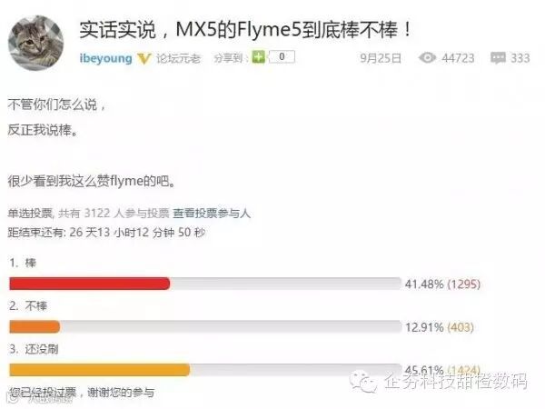 当然,这样仅仅是我这个偏Geek用户体会和思维,并不能代表大众,实际上在微博和魅族论坛,普通用户对于Flyme OS 5的好评远远多于差评,事实证明了这样的通俗化能够更好的适应大多普通用户的喜好和需求,当然这个事实证明仅仅是初步,更多还是要依靠时间和市场口碑来检验。