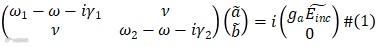 双TPPs产生吸收谷点的原因可以通过谐振子耦合模型来解释,如图1(e)所示。激发的两个TPP可以等效为两个谐振子,耦合方程如公式(1)所示: