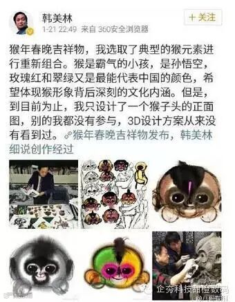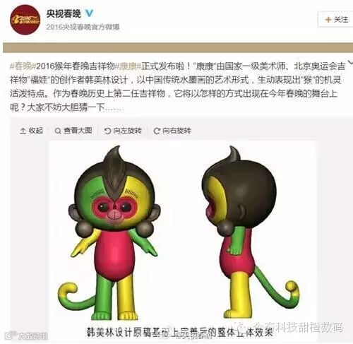 我们不可否认大师的设计水准,只是这3D设计者将大师的大作作了另类的解读,也是让大师很无奈吧。不过也正是因为这样别样的解读一夜之间让猴年春晚吉祥物及猴年春晚多了更多人的关注,而且这程度丝毫不亚于“帝吧”事件在大众中的反应。
