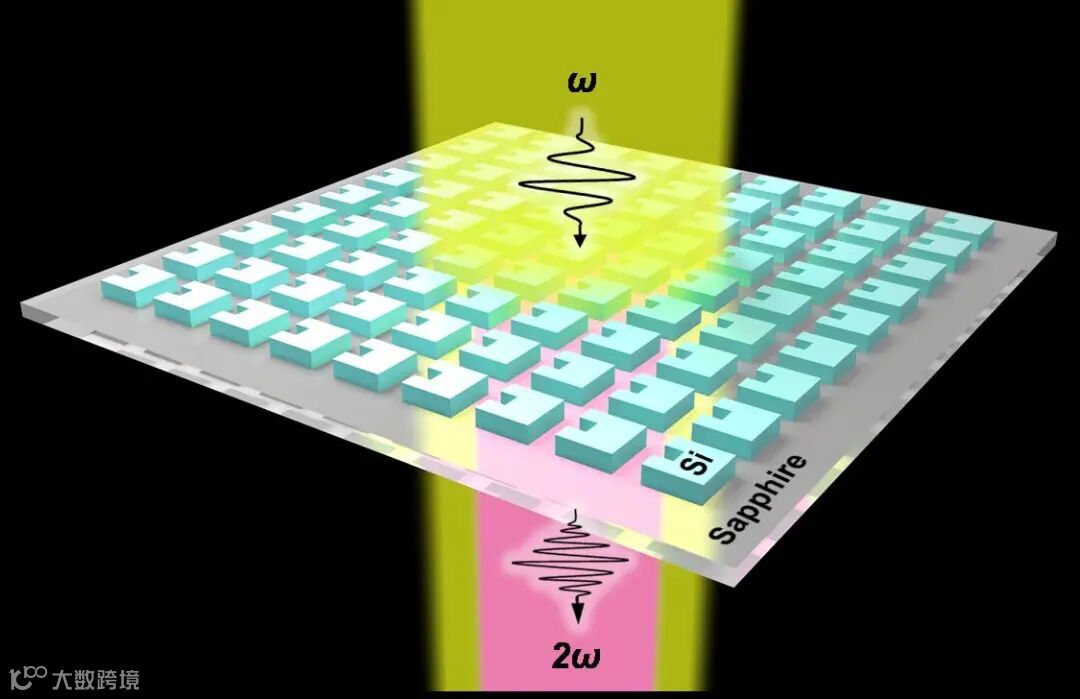 近日,西安电子科技大学微电子学院郝跃院士团队刘艳教授课题组和西北工业大学物理科学与技术学院甘雪涛教授课题组提出了一种实现了硅材料中高效二次谐波的纳米结构设计。通过在硅纳米立方体中引入空气凹槽,一方面可以扩大硅表面二阶非线性效应产生的区域,另一方面可以强烈增强硅表面的电场强度。进一步将有空气凹槽的硅纳米立方体排成阵列,以激发其中准连续域束缚态(BIC),形成共振局域光场,增强硅与光场相互作用。最终,在具有中心反演对称性的硅材料上实现了有效的二阶非线性效应。
