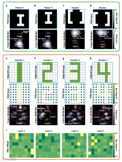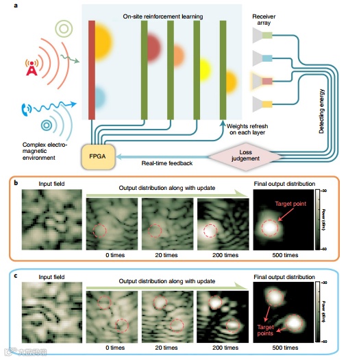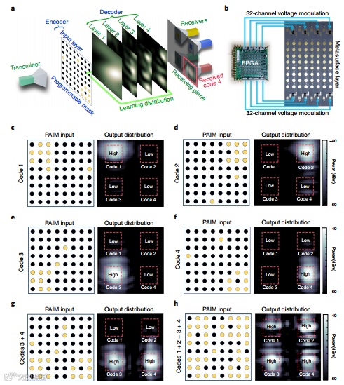 该项研究提出了可编程人工智能机器PAIM,一种现场可编程的衍射深度神经网络D2NN平台,通过电磁波实时控制进行操作,并可以基于电磁波以光速传播的并行性进行计算。同时,实现了网络参数的实时编程和光速计算特性,并展示了多种应用案例,包括图像识别、强化学习和通信多通道编解码,并可以处理传统深度学习任务,例如,图像识别和特征检测,还可以提供一种现场方式来操纵空间电磁波,用于码分多址CDMA方案的多通道编码和解码以及动态多波束聚焦。因此,该可编程人工智能机器PAIM可用于无线通信、信号增强、医疗成像、远程控制和物联网等应用。通过在人工神经元中引入稳定的非线性放大器,还可以进一步开发可编程人工智能机器PAIM的非线性版本,潜在地实现各种新型应用。