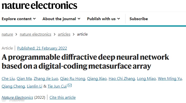 今日,东南大学毫米波国家重点实验室、电磁空间研究院、琶洲实验室智能超材料研究中心崔铁军院士团队刘彻和马骞(一作),联合北京大学李廉林团队,在Nature Electronics上发文,报道了一种基于多层数字编码超表面阵列的可编程透射深度神经网络。超表面上的每个超原子都集成了两个放大器芯片,并充当主动人工神经元,提供35dB(从-22dB到13dB)动态调制范围。研究展示了该系统,并称之为可编程人工智能机器 programmable artificial intelligence machine,可以处理各种深度学习任务,包括图像分类,移动通信编码-解码和实时多波束聚焦。同时,还开发了用于现场学习的强化学习算法和用于数字编码的离散优化算法。