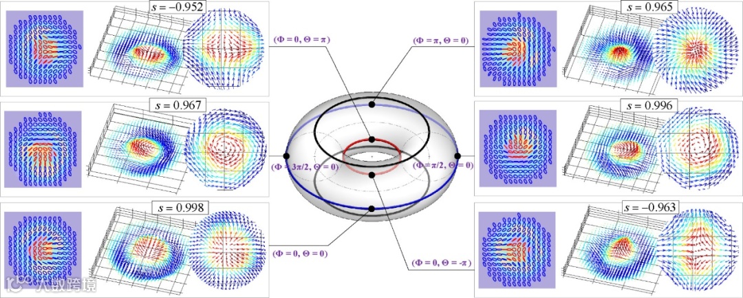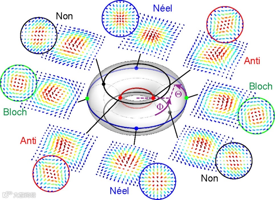 图3 斯格明-庞加莱模型:不同类型的斯格明子之间的转换可以被表征在一个几何环面上。