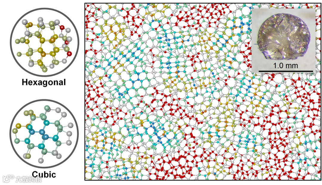 一般来说,根据是否存在长程周期性,我们把固体分为结晶态和非结晶态。然而,当晶体中的长程有序度显著降低时,理解这两种状态之间的差别变得异常困难,特别是对于强共价和类共价固体。为了探索这一结构之谜,理论科学家们提出了一种“次晶态”的结构模型。这种“次晶模型”本质上是在非晶基体中引入纳米尺寸的中程有序结构。然而,科学家们一直未能在自然界或实验中发现这种物质状态 — 完全由中程有序的次晶组成,而又不具有长程有序性。