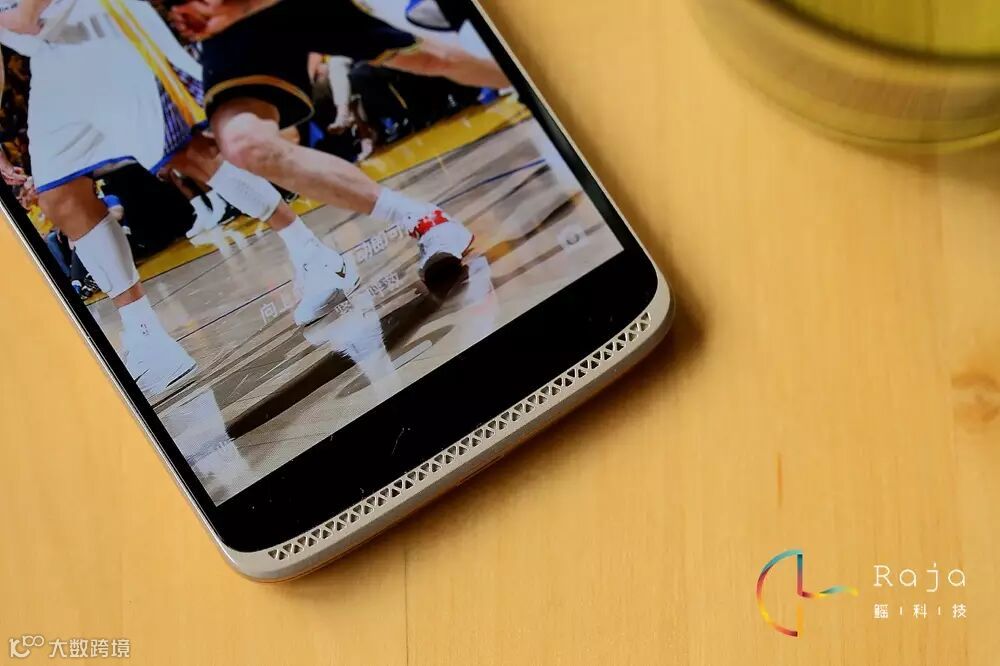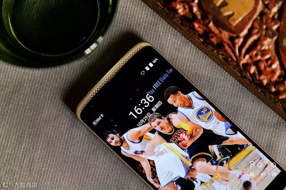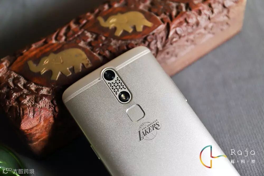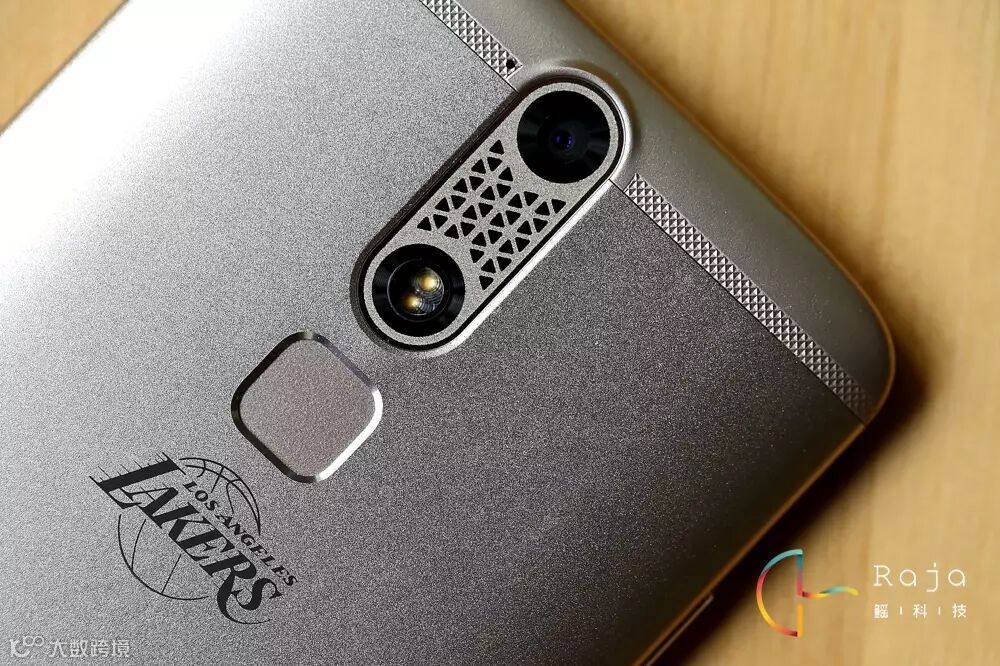 机身背盖同样也采用了三段式的设计,上下部分则是塑料材质通过了防皮革的特殊处理,看上去就像是皮革看起来也有手工工艺打造的那种精致感。在金属材质和塑料材质的衔接处,中兴没有使用简单粗暴的方法进行连接,一道雕刻精美的图纹不仅让过渡更加自然。在作为AXON天机主要卖点的仿生双摄像头设计并没出现在AXON天机mini上,其中一个“镜头孔”被安放了双色温闪光灯。摄像头和闪光灯之间设计了与正面扬声器一致的花纹作为点缀。虽然定位是较为低端机型,但是中兴还是在机身背部搭载了一个的指纹识别器。为了突出带有NBA元素风格,在指纹识别器下面还印有NAB球队的