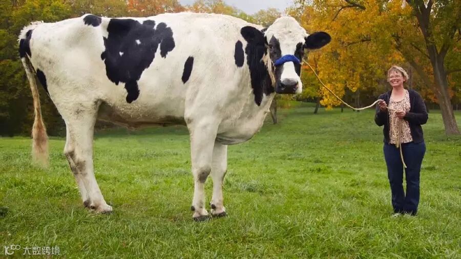 16. 美国伊利诺斯州奥兰治维尔(Orangeville)的奶牛布洛瑟姆(Blossom)被吉尼斯世界纪录评委会评定为全球最高的奶牛,它高6英尺4英寸(约1.93米)。