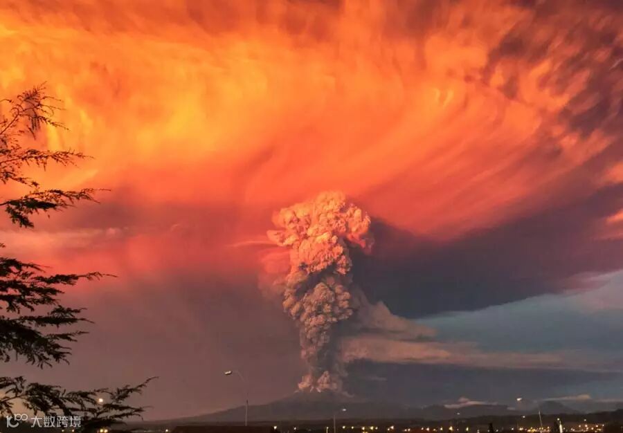 20. 经过43年沉睡,智利南部的卡尔布科火山2015年4月爆发,喷出的巨量火山灰遮天蔽日,让人十分敬畏胆寒,所幸未造成人员伤亡。卡尔布科火山是智利境内90座活火山中最危险的3座之一。