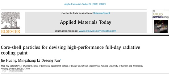 Jie Huang, Mingzhang Li, and Desong Fan, Core-shell particles for devising high-performance full-day radiative cooling paint, Applied Materials Today 25, 101209 (2021).