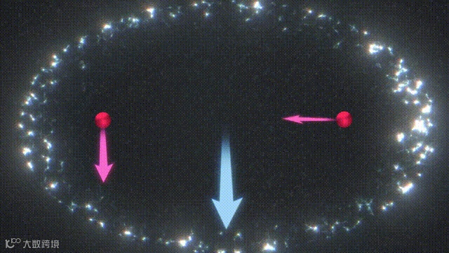 △ 红色点表示磷原子核,外侧闪亮的椭圆代表电子