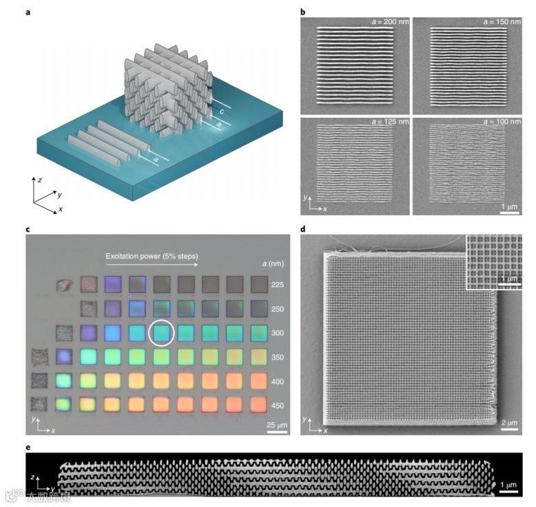 双光子吸收在多光子光学显微术和多光子光刻中是至关重要的,这两种技术已在商业上使用多年。多光子光刻技术已成为制备纳米到微尺度三维结构的成熟方法。在3D光学光刻(也称为激光直写或3D激光纳米打印)中,双光子吸收导致光引发剂转变速率的缩放,因此暴露剂量正比于光强的平方I2。关键的是,这种二次非线性抑制了不可避免的衍射限制激光聚焦的横向和轴向尾部,从而保证了激发的关键浓度和随后沿所有三个空间方向的化学反应。需要注意的是,如果没有额外的非线性,单光子吸收无法从根本上提供这种浓度来制造任意的三维结构。