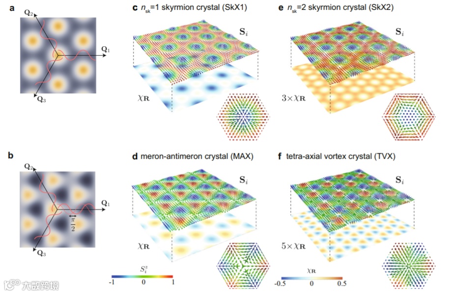 斯格明子是连续场的拓扑结构。虽然它最初是在粒子理论中提出来解释强子的,但事实证明它可以在凝聚态物理中以各种形式实现。在磁铁中发现类似斯格明子磁性纹理的形态,它通常以稳定形式存在,即所谓的斯格明子晶体(SkX),它是一种旋转拓扑自旋纹理的周期阵列。磁性斯格明子晶体是旋转拓扑自旋纹理的周期阵列。它被认为是由多个螺旋自旋密度波构成的干涉图样,其磁纹理随组成波之间的相对相移而变化。该旋转磁纹理通过Berry相机制产生出一个出射磁场,并导致特殊的输运现象,如拓扑霍尔效应,因此引起了人们极大的关注。人们发现这种相位自由度不仅与磁性有关,还与输运性质有关,但其影响迄今尚未阐明。