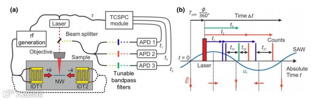 近日,来自德国奥格斯堡大学的Maximilian M. Sonner等人提出了一个多通道平台的应用,以监测随时间变化的声表面波调制发射多达三个光谱隔离的衰减通道。利用多型GaAs-(Al)GaAs核壳纳米线作为模型系统,能够直接和同时观察耦合载流子动力学。此外,该工作还表明,可以直接获得这些数据的高阶相关性,揭示了潜在的耦合动力学的清晰纹理。